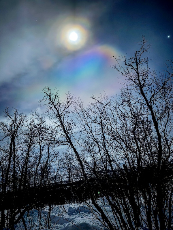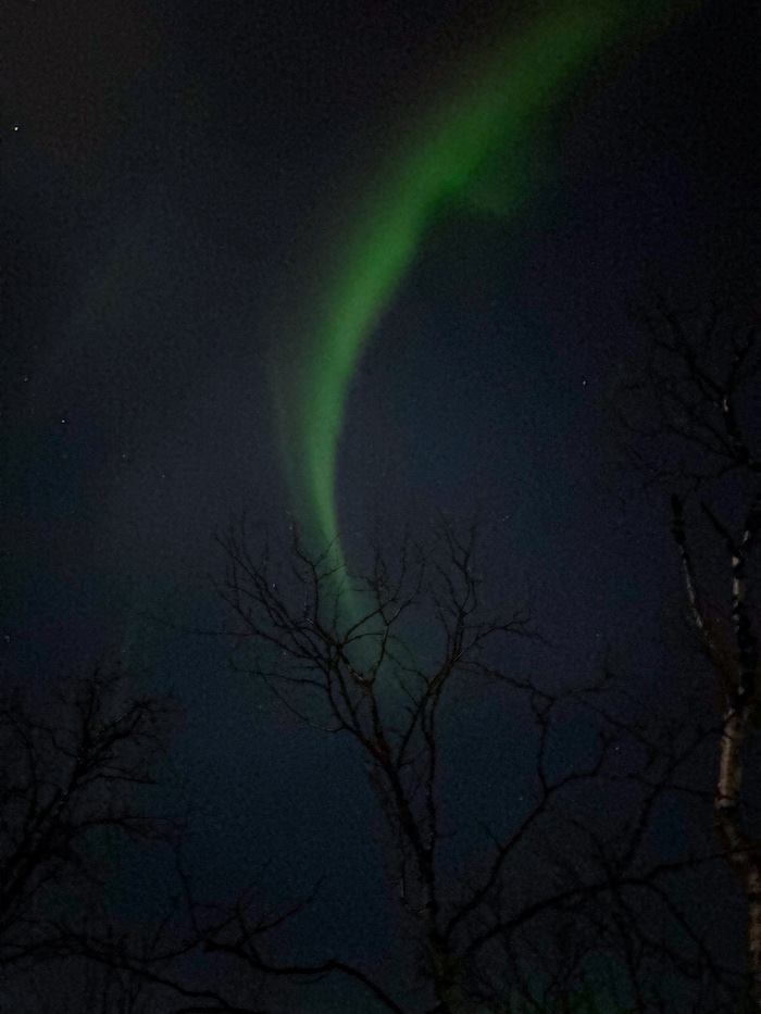 The weather was miserable in Tromsø and there was absolutely no visibility on the night we took the tour. However, after a 3.5 hour drive into Finland, we were able to get a brief sighting of the lights. But that’s not all! We also spotted a rare polar stratospheric cloud.