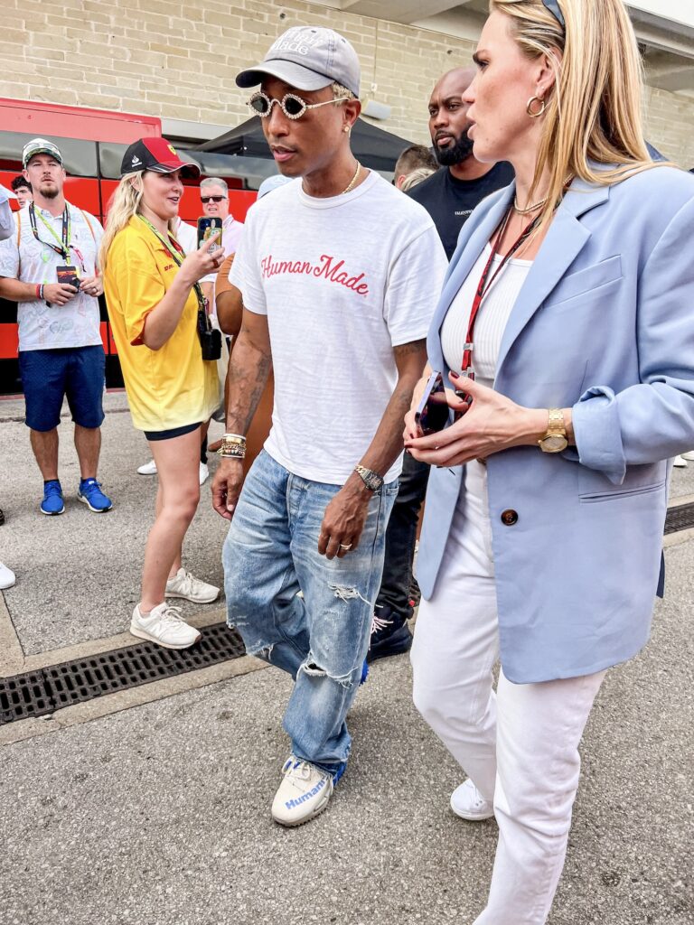 Pharrell is spotted so often at F1 races that event the official F1 instagram account posted about him this week. We will surely see him at the track and perhaps out and about in Austin.