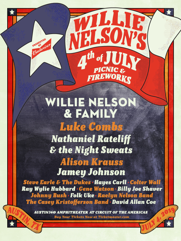 Other than Nelson’s White House escapades he also happens to host a family friendly picnic on the 4th of July! This year will be his 5th annual 4th of July Picnic hosted at Circuit of the Americas’ Austin360 Amphitheater (though the event dates back to 1973!). This year’s party not only features our favorite outlaw but also includes performances from Luke Combs, Nathaniel Rateliff, Alison Krauss and more.