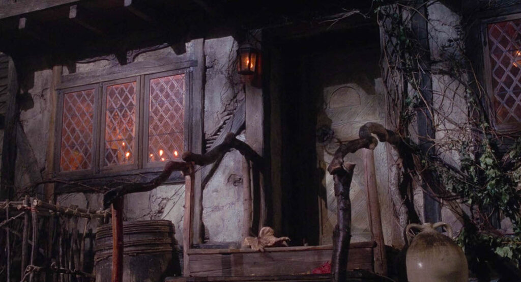 Unfortunately, the house shown in the movie is not real. The interior and exterior of the gabled house, based on an amalgam of 17th Century New England domestic architecture such as the House of Seven Gables, was constructed onstage at Disney Studios. Now, because of the release of Hocus Pocus 2, the Sanderson Sisters house has been recreated and made into an Airbnb. The house is located in the aforementioned Pioneer Village. Inside, there’s everything a Hocus Pocus fan could ask for including a large bubbling cauldron in the middle of the room!