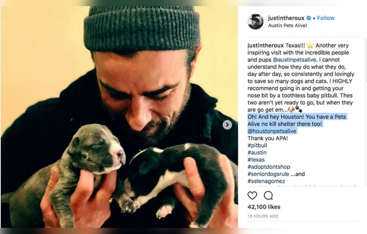 It’s no secret that Justin and Jennifer are dog lovers. Just ask Austin Pets Alive! Justin first got involved with the organization when he was filming The Leftovers in Austin in 2016. They were even the reason behind Justin’s latest adoption, Kumo. The pit bull was rescued after getting misplaced during Hurricane Harvey and Justin drove down to Houston to pick up himself.