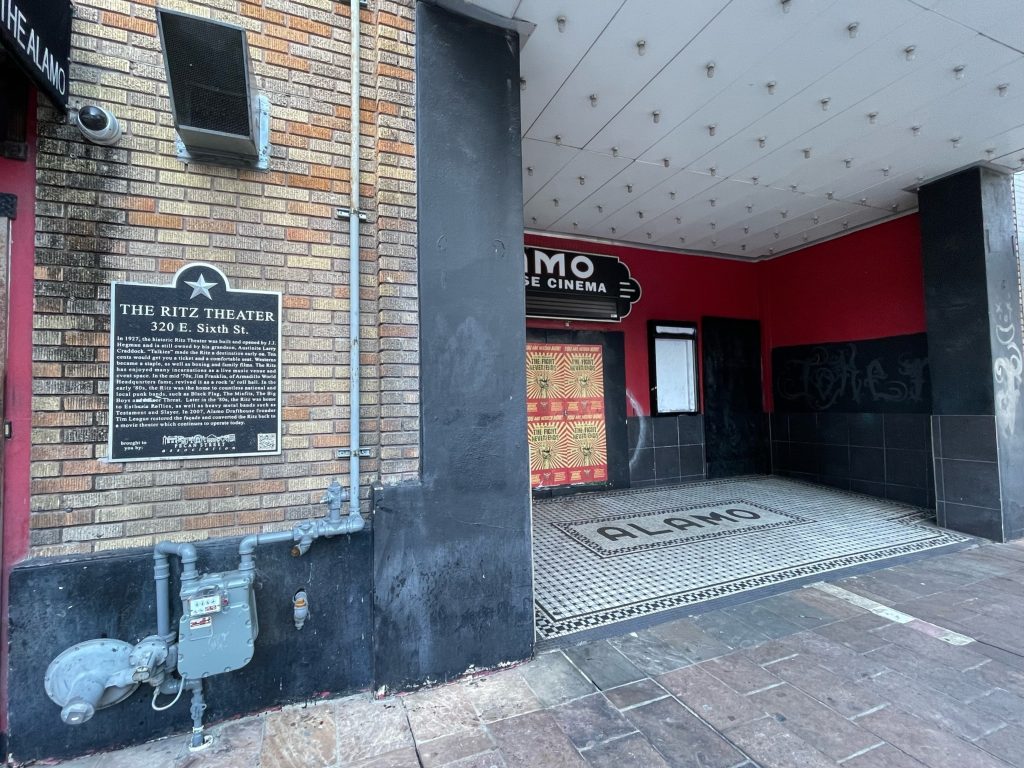 Now, it seems we have an answer. According to this article, which references local property filings and an application to the city’s Historic Landmark Commission, the new comedy club will be located in the old Ritz Theater on Sixth Street. Apparently, new signage for the building is listed on the consent agenda of the commission’s February 28 meeting. The name used in documents is Comedy Mothership.
