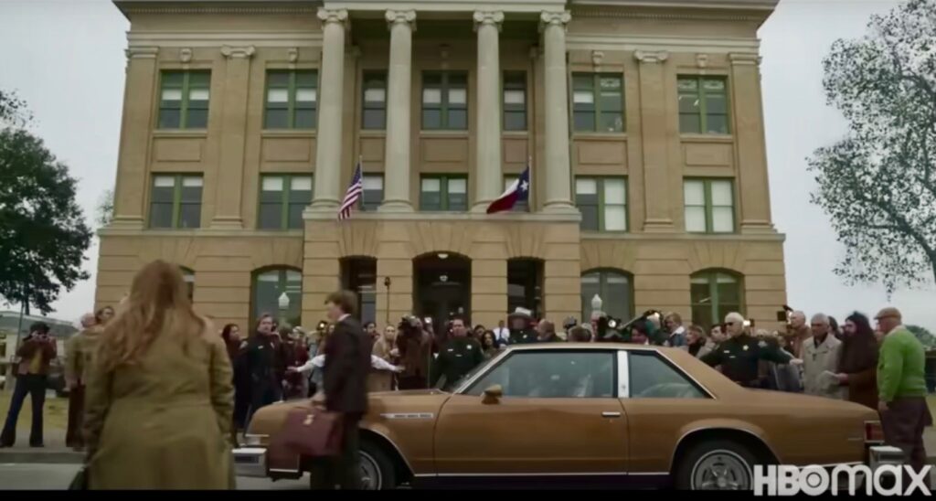 As we first reported in the Fall of 2021, the series started in Hutto in September. We can also confirm that they shot at the Williamson County Court House in Georgetown, near the trail next to the Austin American-Statesman building and at the Crestview Shopping Center. The cars were always the give away for what was filming there.
