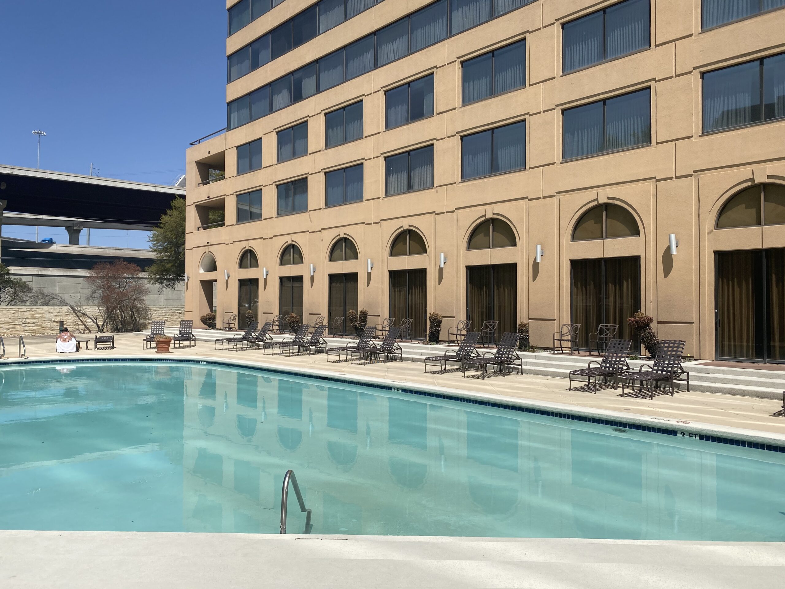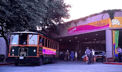 And speaking of hotels, the hotel where the pageant participants stay is the Austin Southpark Hotel (formerly an Omni), which looks exactly the same as of January 2022. Note The Dillo trolley in the screen grab from the film. According to a follower, the scene where Gracie prays for forgiveness after taking a bit of her page and shmeer, as well as the final scene where she is named Miss Congeniality were both shot at the Stephen F. Austin Royal Sonesta Hotel on Congress Avenue at 7th Streey.