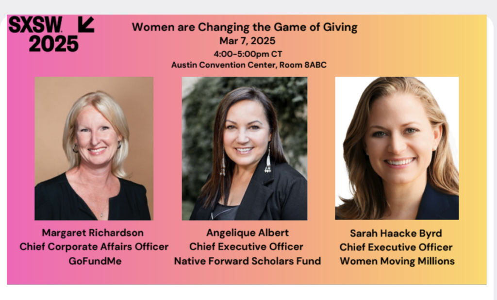 The next generation of women are to inherit a significant portion of the greatest generational wealth transfer in history. Women have changed the game by making commitments to causes directly benefiting women and girls, to offering no strings attached donations and just fundraising for the greater good. Join Angelique Albert, Sarah Haacke Byrd and Margaret Richardson (GoFundMe) to learn more about what the future of wealth looks like for women. Find details here.