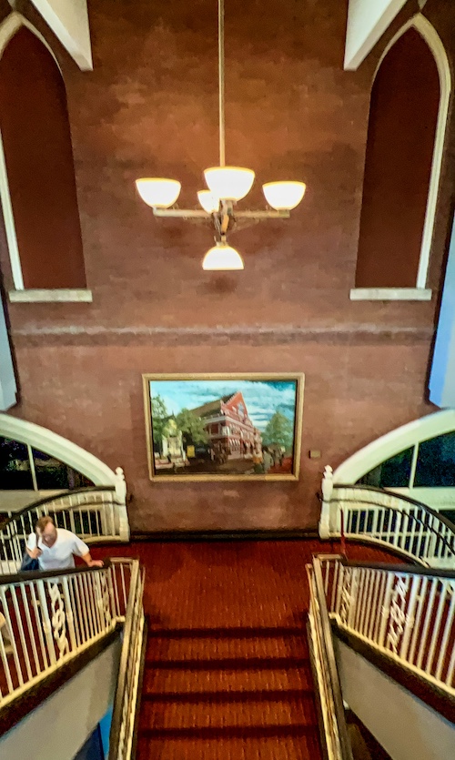 Obviously, Highway 65 is a fictional place, though it looks pretty real when passing by. Located on the side of the downtown Homewood Suites, the hotel was under construction during our visit. Luckily, the facade was still clearly visible. As of 2023, the window clings and green awnings have been removed, however the hotel’s black awning says Highway 65 Records on it.