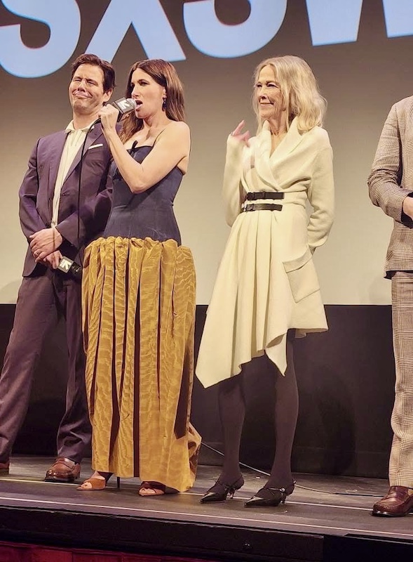 We spotted Catherine O’Hara at the Four Seasons as well, along with her The Studio co-star Seth Rogen. Other celebrity sightings at the hotel that evening included: Elizabeth Perkins, Richard E. Grant, Andrew Rannells, Téa Leoni, Will Poulter and more.