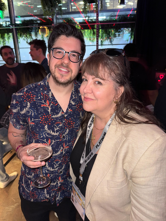 Another unexpected meeting at the Cinema Center involved Cristo Fernandez, who plays Dani on Ted Lasso. We spotted him early at a party for American Sweatshop and since the scene wasn’t really happening yet, we didn’t think he’d mind taking a picture. Though he did take one, he was really not feeling it. So, we grabbed a Bloom Sparking Energy and called it a night.