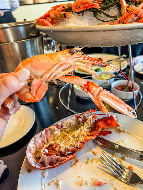 There are a variety of seafood items on the menu but the best bang for our buck is definitely the seafood platter! It is piled high with lobster, shrimps, scallops, crab claws, mussels, Norwegian crayfish and snow crab. Oysters are an add on but this is already teaming with so much food, we passed on ordering anything else.