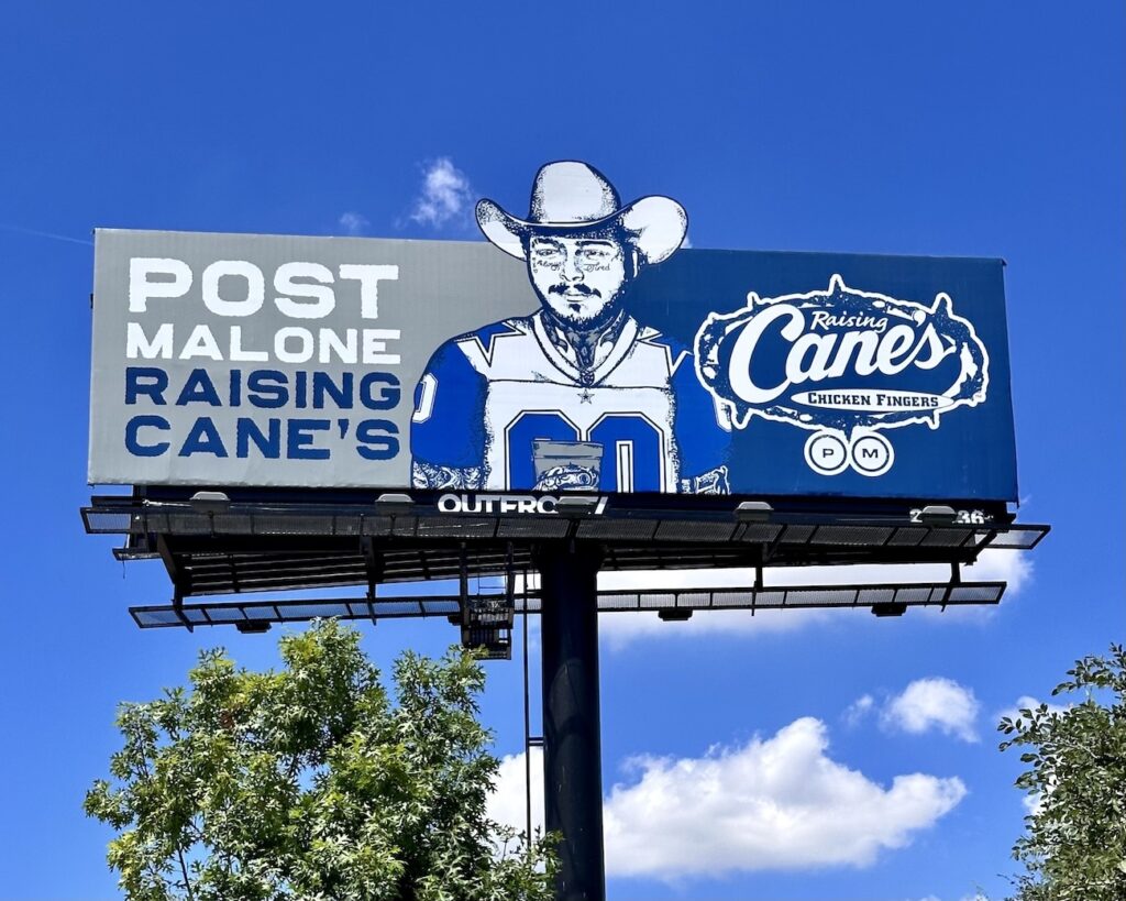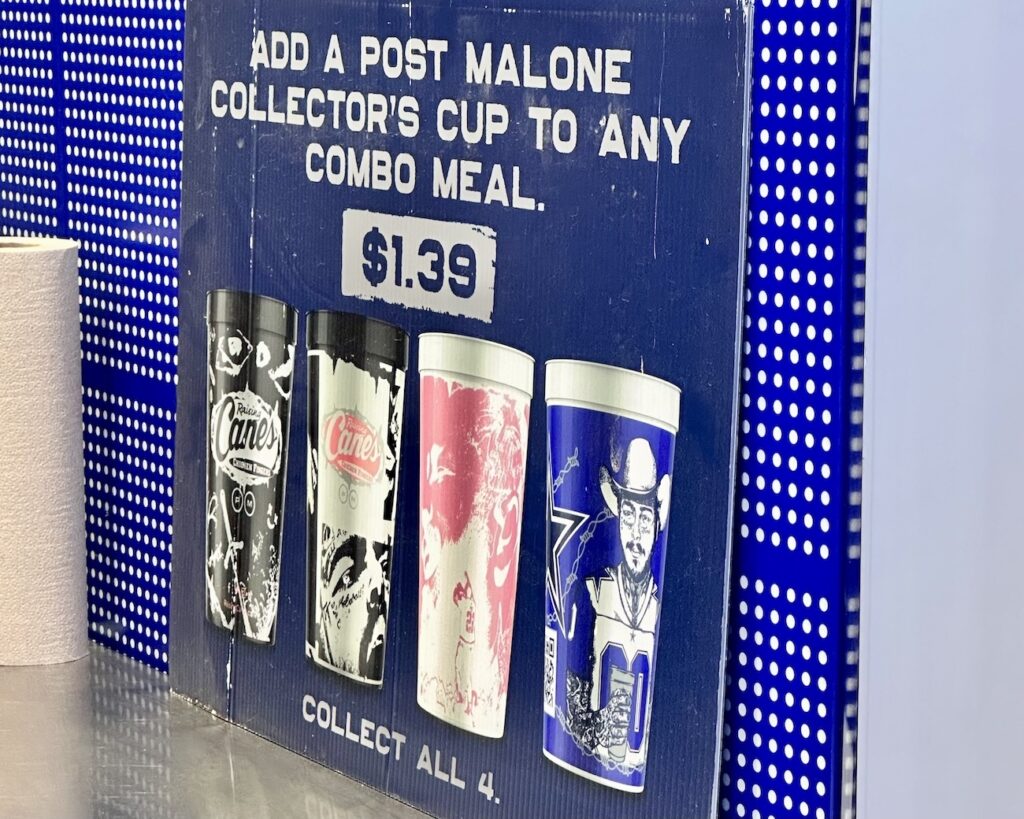 Post Malone has teamed up with Canes and the Dallas Cowboys to open a unique Raising Canes experience in Dallas and you’re going to want to add it to your Dallas must-see list! The crossover artist combines his love of the city and the team that was such a big influence on him growing up to create this one-of-a-kind Raising Canes. And while this might not be the only Post Malone Raising Canes, or even the first (the other location is in Midvale, Utah), it’s still one-of-a-kind!