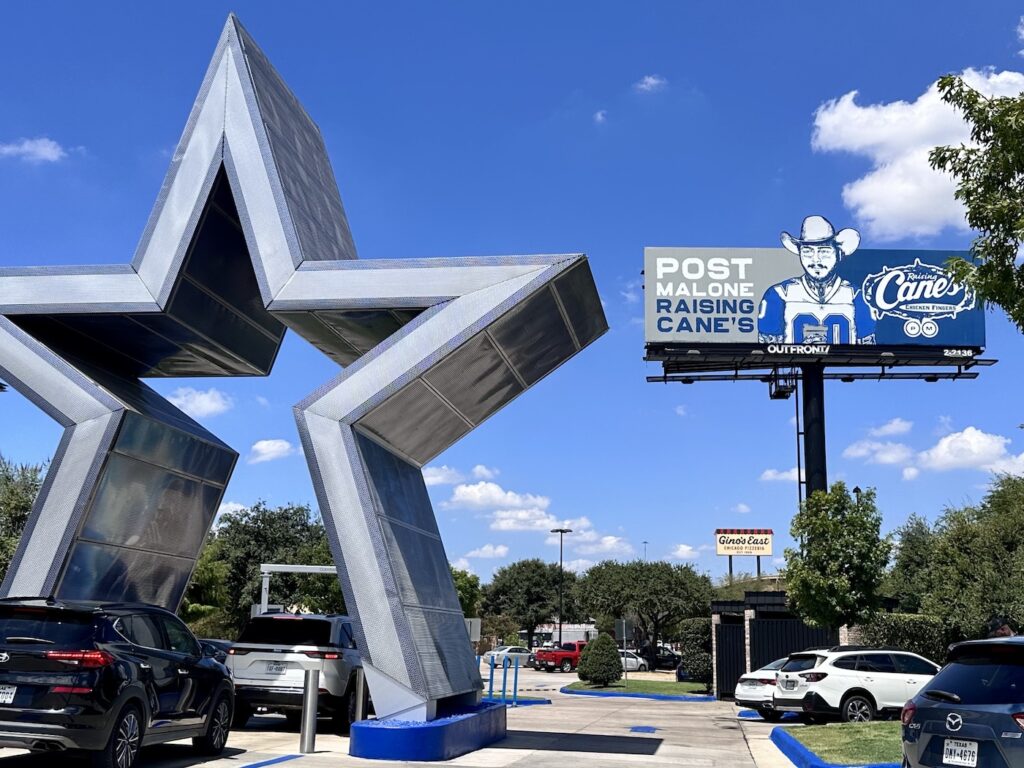 A stop at this Cane’s is a must for anyone who loves Post Malone, music, the Dallas Cowboys or simply chicken tenders! The restaurant is located at 2255 W Northwest Highway in Dallas.
